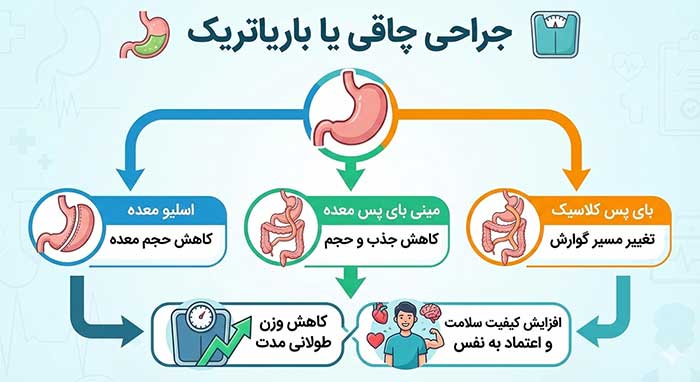 جراحی چاقی یا جراحی باریاتریک مانند اسلیو معده ، مینی بای پس معده و بای پس کلاسیک ابزاری موثر برای کاهش وزن طولانی مدت است. این روش ها به شما کمک می کنند تا کیفیت سلامت و اعتماد به نفس خود را افزایش دهید.