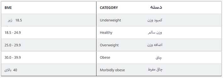 - شاخص توده بدنی در محدوده 18-24.9 بهینه در نظر گرفته می شود.(18 <= BMI <= 24.9)